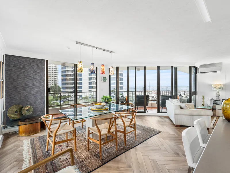 Positioned in a sought-after waterfront complex, this generously sized apartment offers an exceptional coastal lifestyle in the heart of Runaway Bay. Boasting expansive windows and multiple balcony areas, the residence captures stunning outlooks across the Broadwater, hinterland and surrounding skyline while allowing refreshing sea breezes to flow through the home.