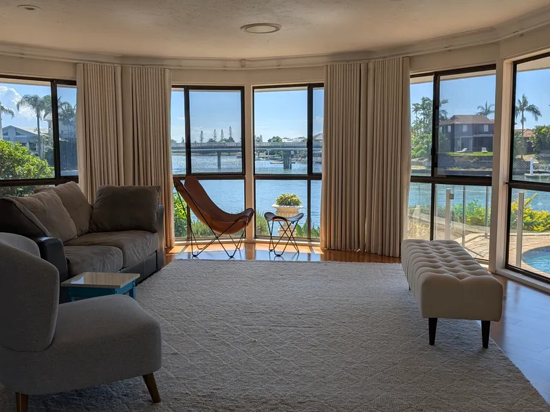 Welcome to 3 Pebble Beach Drive, a luxury waterfront sanctuary nestled in the exclusive Runaway Bay Islands enclave. This prestigious canal-front residence invites you to experience refined coastal living. Perfectly positioned on a generous block with a wide water frontage, the home captures panoramic 270° water views that stretch across tranquil canals towards the Broadwater. Every moment here is graced by gentle sea breezes and golden sunlight reflecting off the water, offering an idyllic backdrop for both lavish entertaining and everyday relaxation.