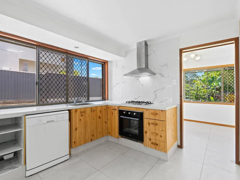 Inside the home, youll find a bright open-plan living and dining area filled with natural light, complemented by air conditioning to ensure year-round comfort. The functional modern kitchen has been refurbished and features gas cooking, stainless steel appliances, ample bench space, and pleasant leafy garden views.