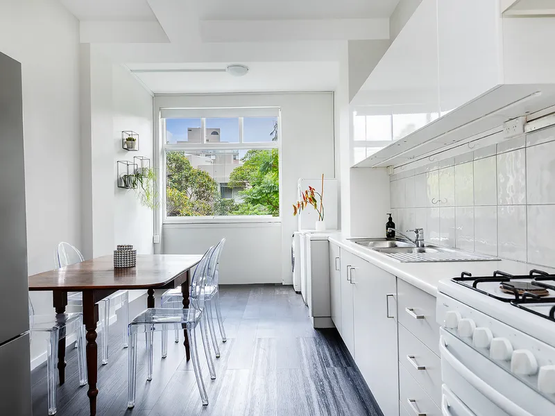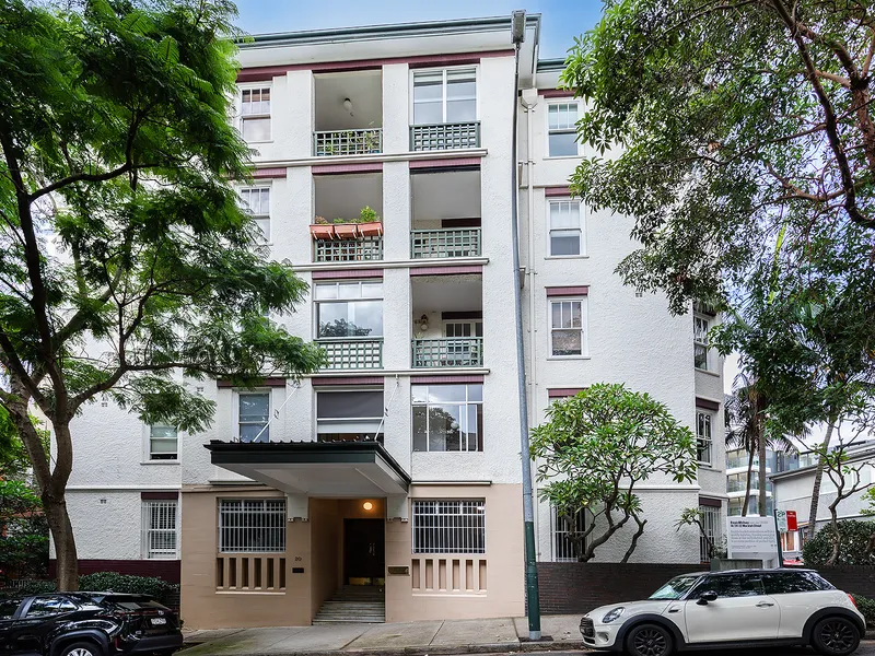 Positioned in a serene, tree-lined avenue just footsteps from the harbour at Rushcutters Bay Park, this light-filled apartment offers space, charm, and an unbeatable lifestyle. Set on the north-west corner of the second floor in the historic 'Park Lane Mansions'-a beautifully maintained c1917 Art Deco building, this residence enjoys a peaceful setting with timeless original features.