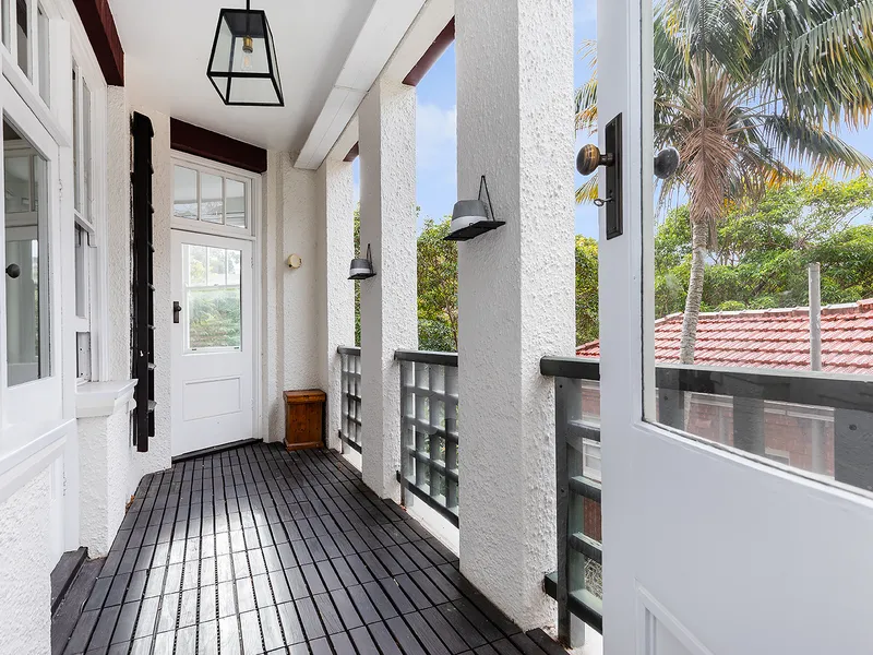 Bathed in natural light, the apartment boasts a wide north-facing balcony accessed from the living room and two of the three bedrooms. High ceilings, timber floors, sash windows, and generous proportions throughout create a warm and inviting atmosphere.