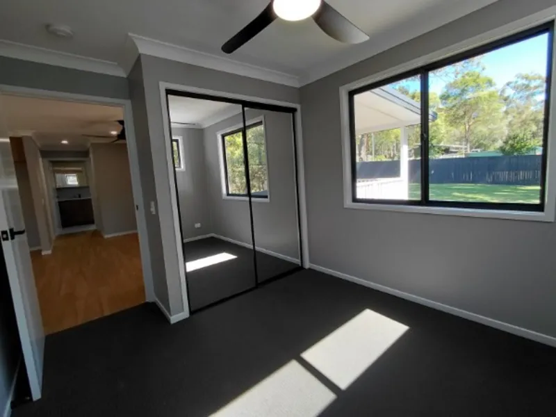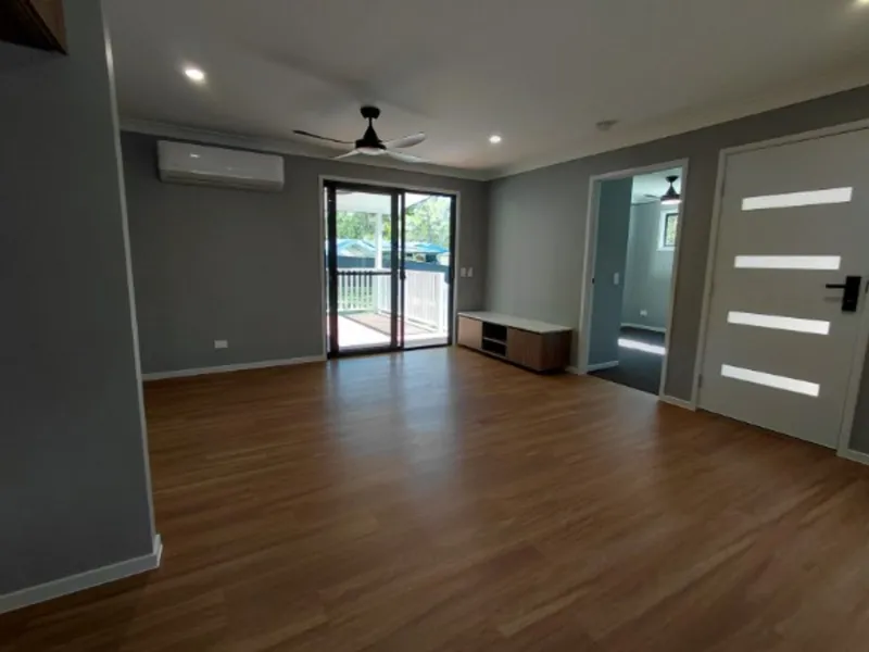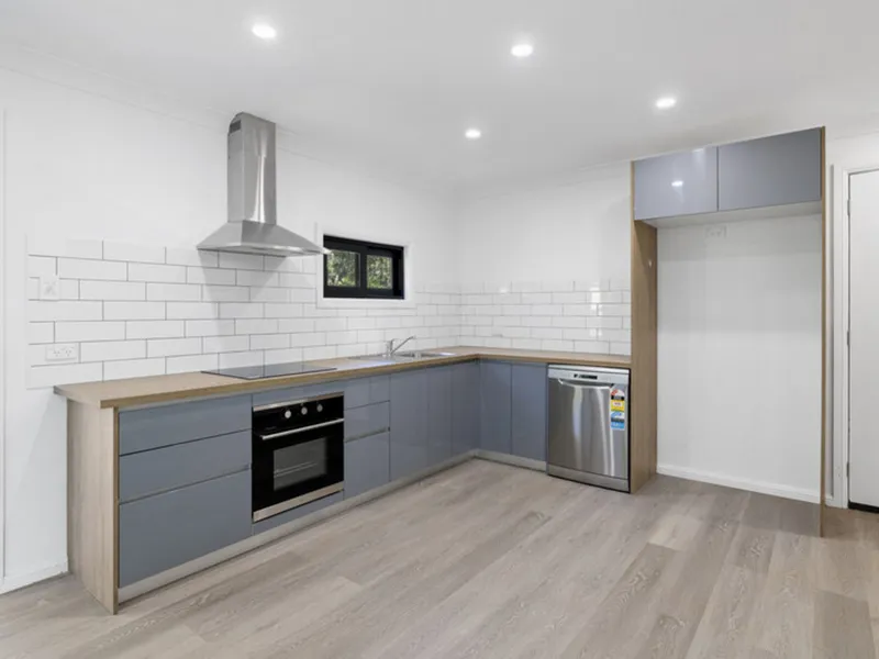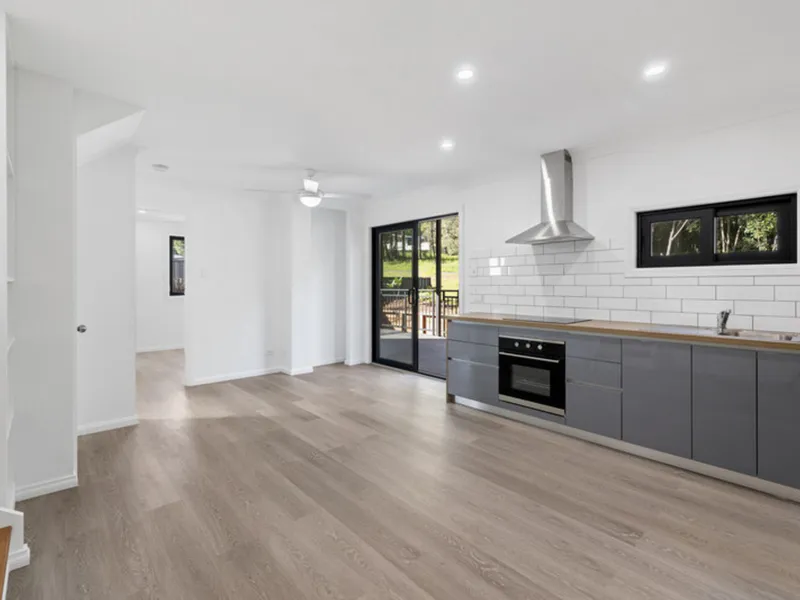 Fantastic NEW home with air conditioned open plan living (built in TV unit) , modern kitchen and fabulous private deck overlooking grassed backyard.