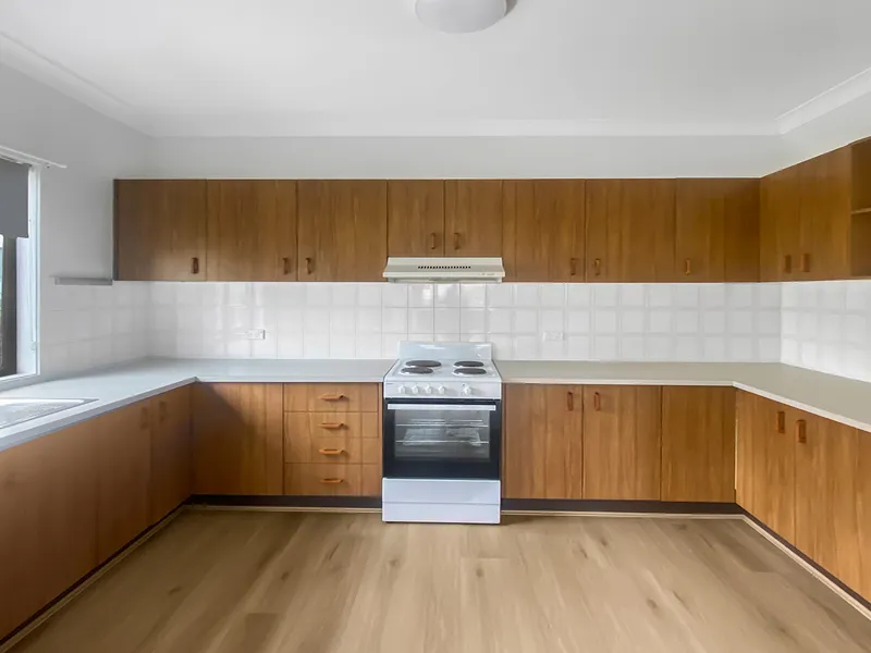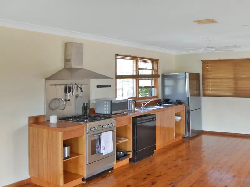 - Kitchen timber features with gas stove & dishwasher