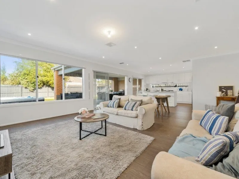- spacious open plan kitchen, meals and living overlooking rear yard and outdoor spa and decked entertaining area- undercover alfresco.