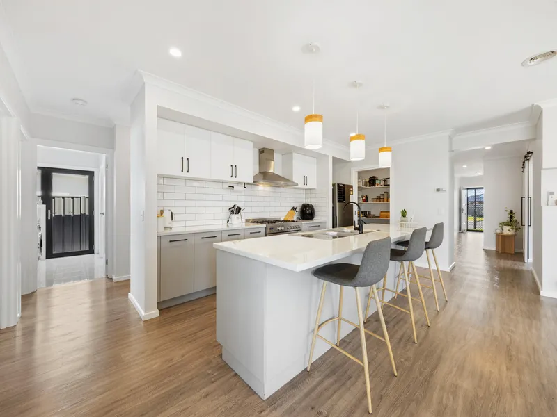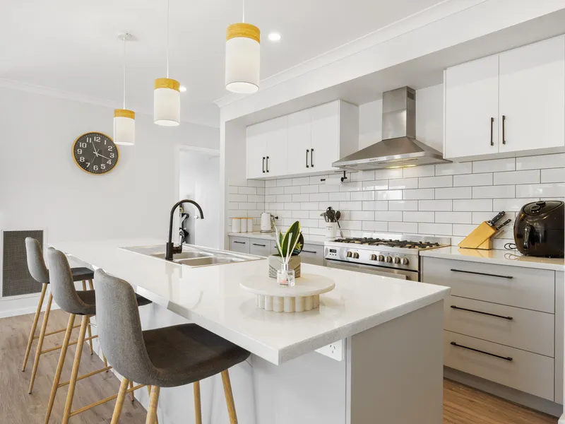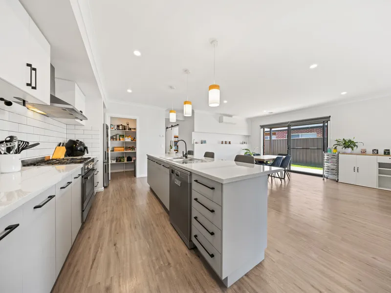 The home includes four spacious bedrooms and two separate living areas, providing flexibility and plenty of room for families to relax and unwind. Year-round comfort is ensured with ducted heating along with two split systems. The stylish kitchen is well appointed with a walk-in pantry and abundant storage, making it both functional and ideal for everyday living.