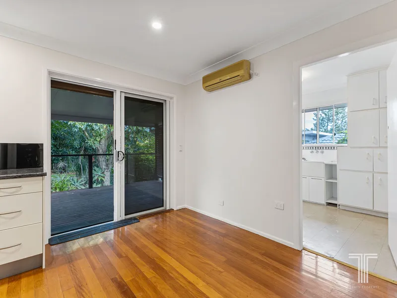 Freshly painted throughout and featuring polished timber floors, the home feels warm, inviting and full of natural light. The spacious, air-conditioned lounge room provides the perfect place to relax, while the elevated separate room offers flexibility as a formal dining space, home office, reading room or additional living area to suit your lifestyle.