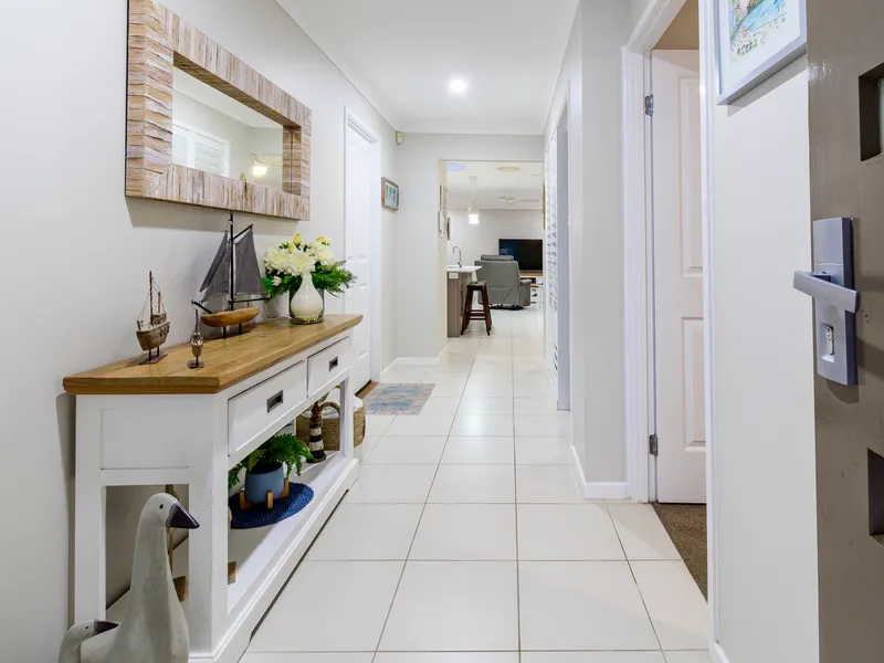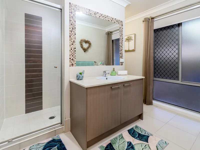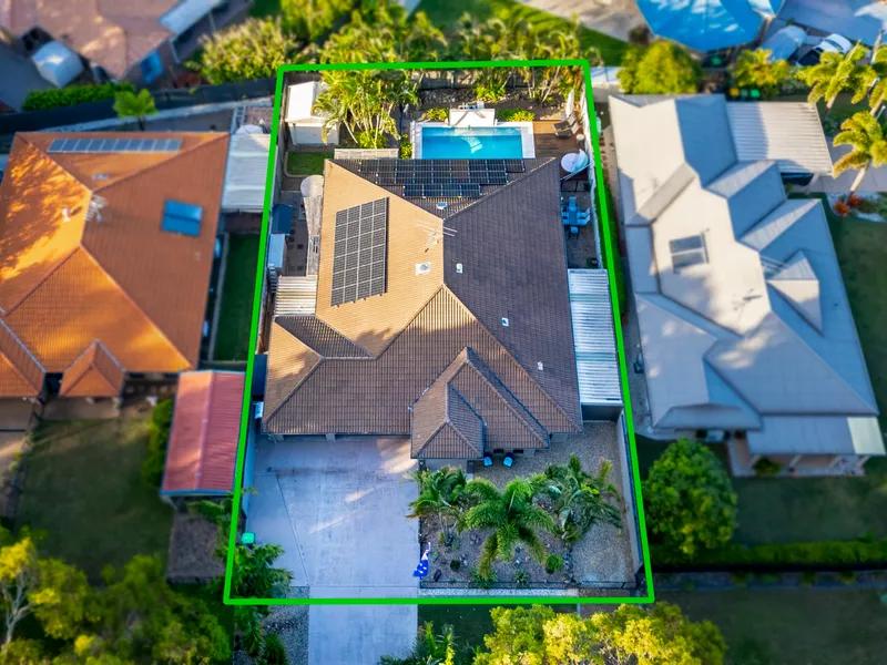 Positioned in a peaceful bushland cul-de-sac, 20 Bondi Court, Sandstone Point offers a fantastic lifestyle opportunity in a quiet and highly sought-after location. This modern Stylemaster built home enjoys a tranquil bushland outlook and a north-facing backyard, while still being close to local shops, cafés, schools, parks, public transport and the beaches of Bribie Island. Inside, the home features light-filled open plan living with ducted air conditioning and multiple living spaces, providing flexibility for families. The modern kitchen includes stone benchtops, stainless steel appliances, dishwasher and a walk-in pantry, overlooking the main living and dining area which flows out to the outdoor entertaining space. The spacious master bedroom offers a walk-in robe and private ensuite, while the remaining bedrooms all include built-in robes. Outdoors, the home boasts a beautiful inground pool with heating and cooling pump, water feature and sun deck, creating the perfect space to relax or entertain. The fully fenced yard is surrounded by established trees for added privacy. The property also offers impressive garage space with room for four or more vehicles, as well as additional space for trailers, boats or storage.