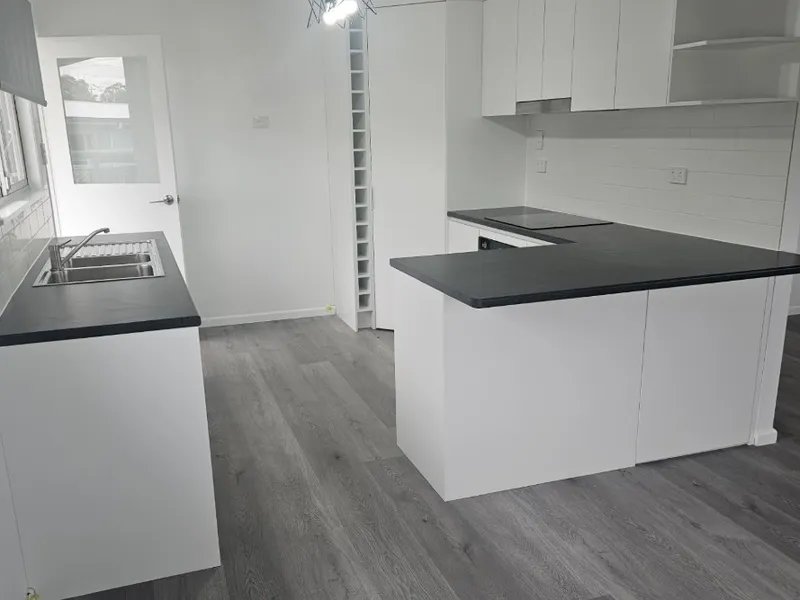 - Renovated kitchen with modern finishes, overlooking living area and backyard