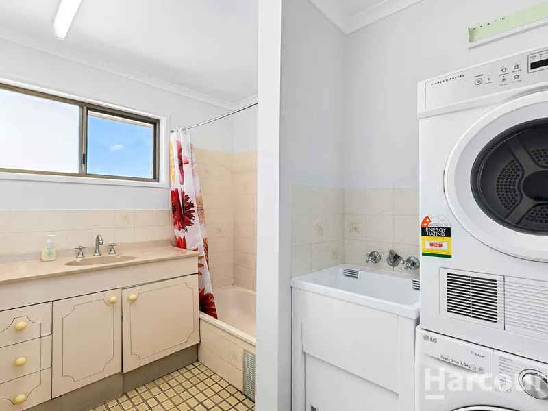 The combined bathroom and laundry offer practicality, while the balcony off the living room and bedroom provides a serene spot to unwind and soak in the coastal lifestyle.