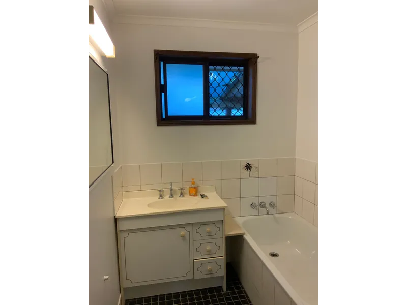 3 good sized bedrooms. Air conditioning in living room and in master bedroom Functional layout. Private and spacious fully fenced backyard with rear patio.  4 min drive to Scarness beach and cafe strip. Bus stop 70 meters walk across the road. Close to schools and shops. Small pet considered. No smokers.