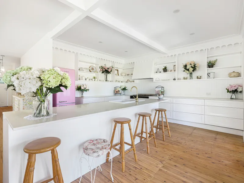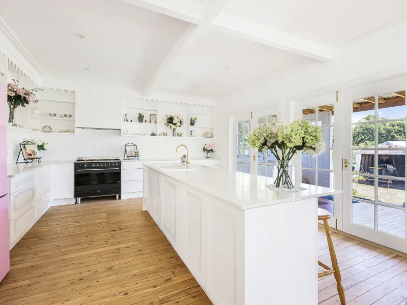 • Modern open-plan kitchen, living, and dining area with ample cupboard space