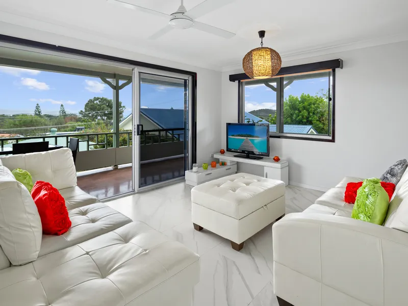 Commanding a corner position, this impressive two-level home delivers space, style, and breathtaking outlooks just 450m from the beach.