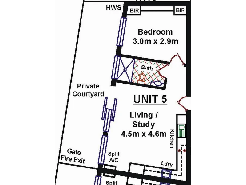 You have an modern kitchen / laundry, a dining area AND a private courtyard.