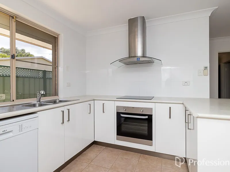 Step inside to find tiled flooring throughout the main living areas, while the separate living room provides a cosy retreat with soft carpet and a split system air conditioner. The adjoining meals area flows seamlessly from the well-proportioned kitchen, which features ample cabinetry, an electric cooktop, double sink, dishwasher, and plenty of preparation and storage space.