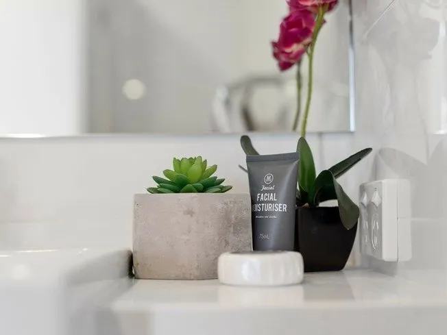 Two contemporary bathrooms — private ensuite to the main bedroom and a second bathroom for everyday use, both finished with quality fittings and a clean, neutral look.