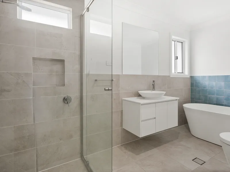 • Sleek designer kitchen with stone bench top & quality stainless steel appliances, including microwave and dishwasher