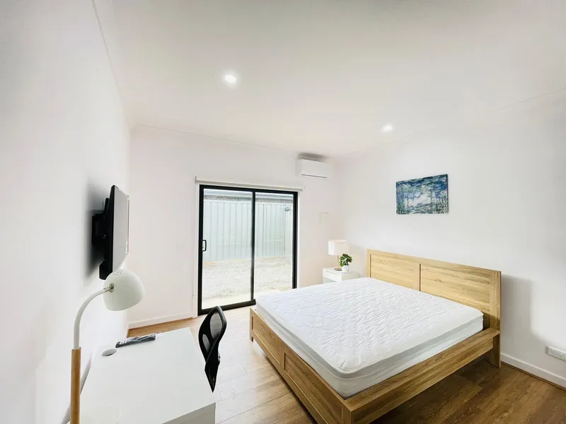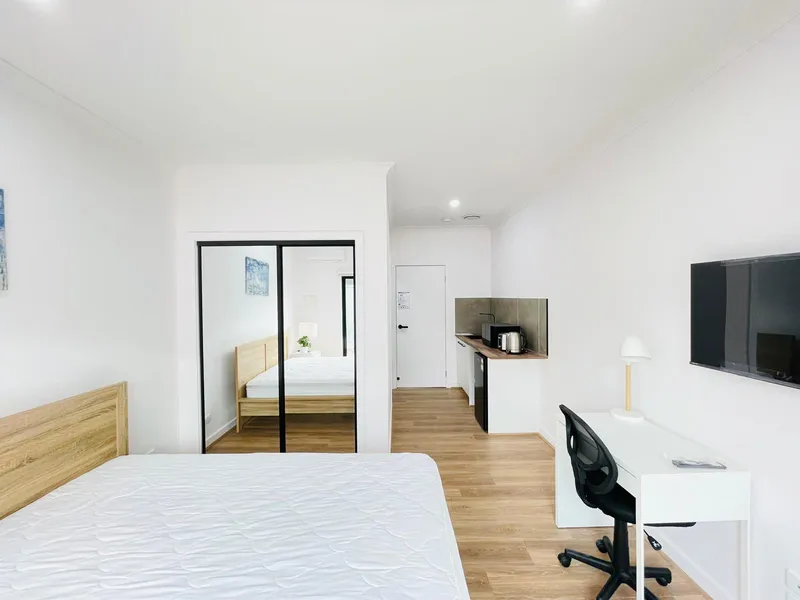 ? Aesthetically designed private Studio with Queen-size Bed, Built-in wardrobe, work desk & blinds