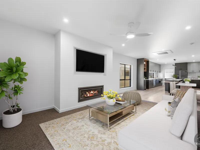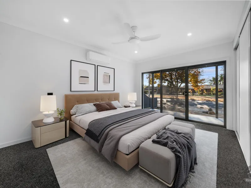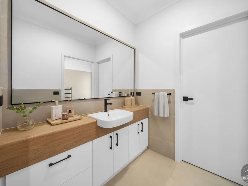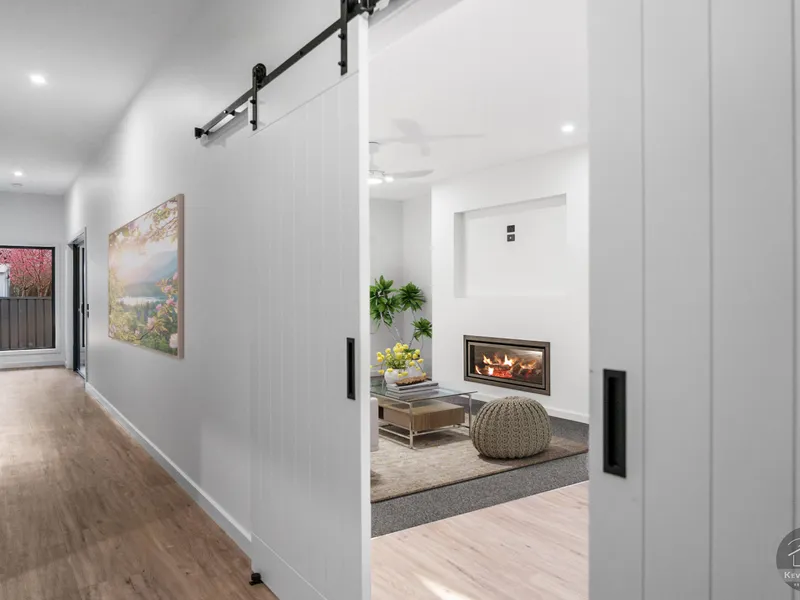 A wide central hallway welcomes you and cleverly separates the private bedroom wing from the expansive open-plan living areas, creating both privacy and practicality for families or shared living.