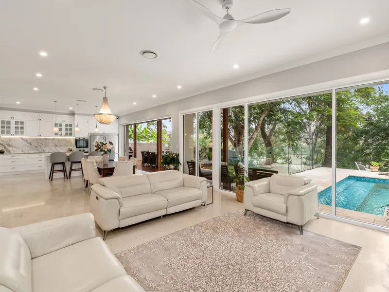 - Oversized master suite, with floor to ceiling windows capturing the river-views, private deck, large study nook/parent retreat, impressive walk-in wardrobe with chute to laundry, two-person spa-bath with chandelier overhead overlooking the river - perfect to unwind after a busy week.