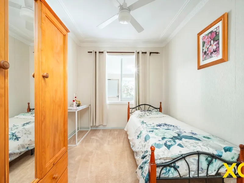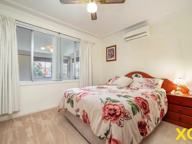Beyond a mature tree on the front verge, and a well-tended hedge, sits the pristine, cream painted house with subtle burgundy trim. An attached tandem carport provides ample parking, as well as an all-weather entry to the home.