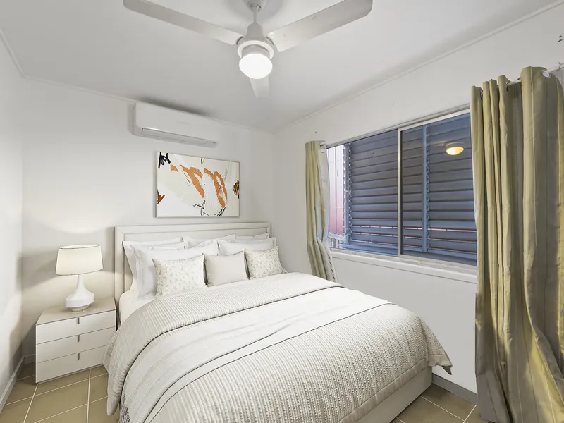 The master bedroom is luxuriously proportioned and enjoys its own balcony with elevated outlook.