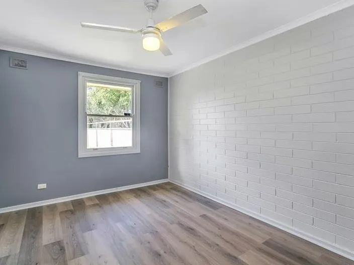 The bedrooms are well-sized and filled with natural light, each fitted with ceiling fans to provide comfort during warmer months. The bathroom is neat and practical, offering both a shower and bathtub for everyday family living.