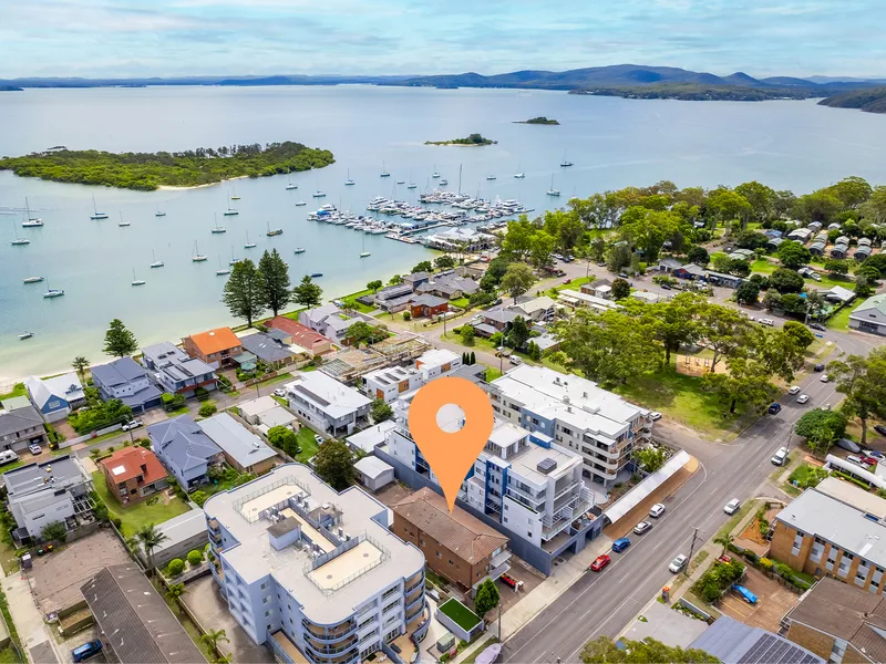 On the edge of Soldiers Point, walk to the beach and Soldiers Point Marina. This renovated spacious unfurnished unit features, floorboards throughout the whole unit, entry hallway with shelf storage, two spacious bedrooms, both with build-in robes, stunning bathroom, open-plan lounge with a split system a/c and a sun-drenched balcony off the living area. Fully equipped kitchen with a dishwasher, ample cupboard/bench space, water views from the kitchen window. Key access to the main entrance for extra security.