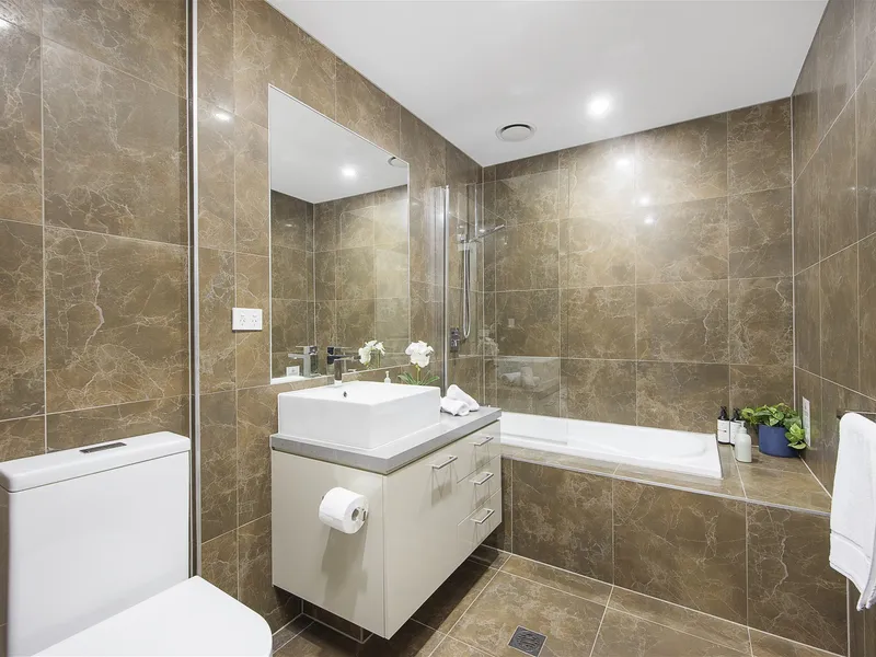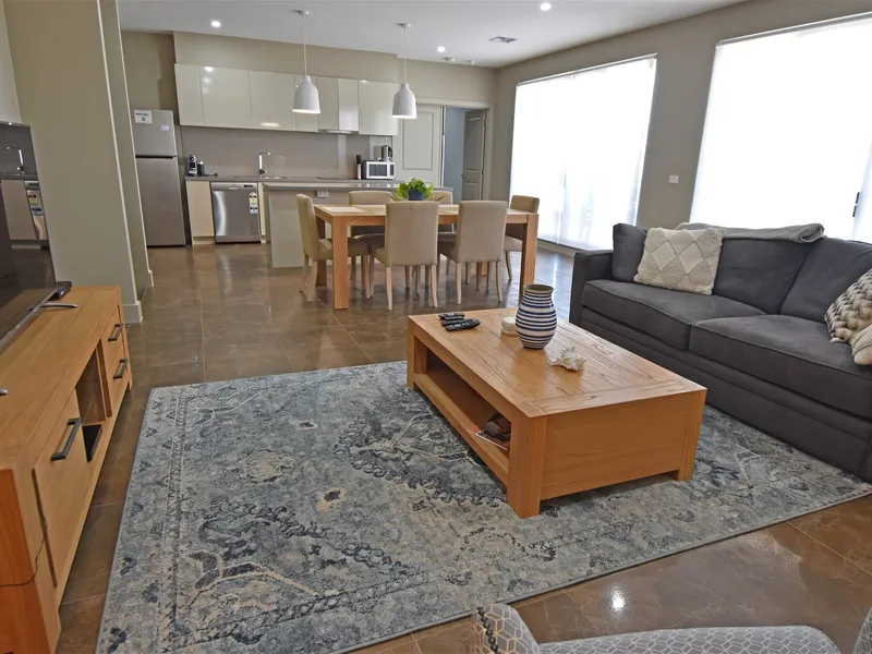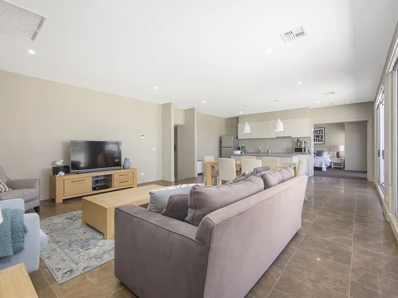 The lounge is delightfully relaxing with large TV to unwind to, and the entire apartment is kept comfortable all year round with ducted heating and refrigerated cooling.