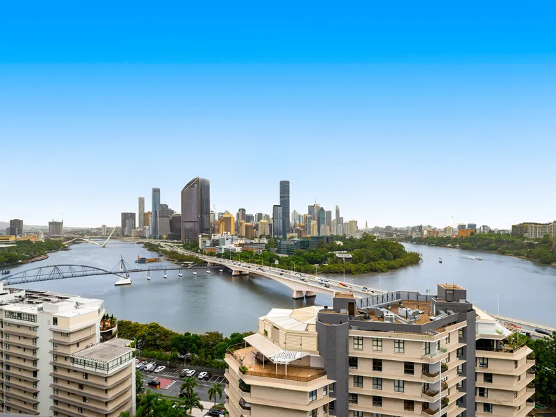 With a north facing orientation, views from the apartment take in some of Brisbane’s best spanning both reaches of the Brisbane river from the Kangaroo Point Cliffs past the Story Bridge and CBD to Brisbane’s Southbank and Mount Coot-tha beyond.