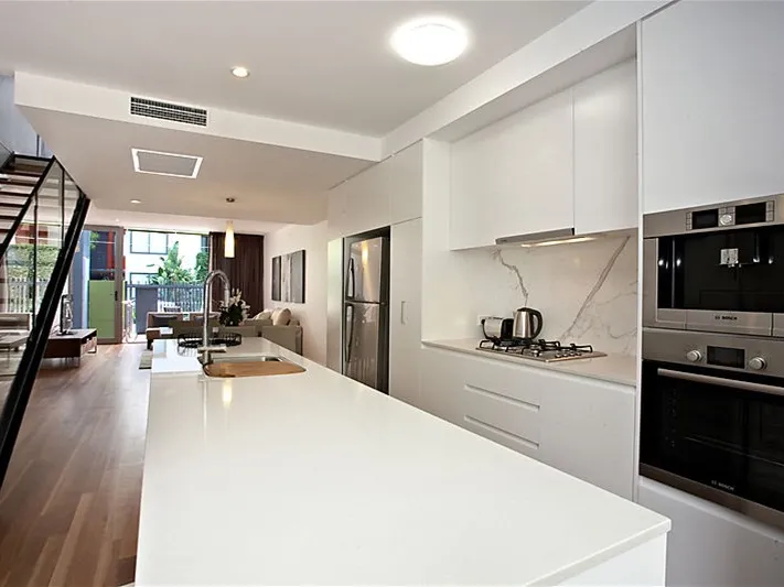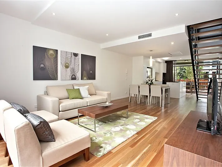 Enter on level 1 through your own private courtyard. Beautiful timber floors throughout the ground level and a designer kitchen including quality European appliances and granite bench tops. At the other end is a second courtyard which opens up to your very own communal garden to enjoy. Don’t worry about the gardening - at Terrace Row this is taken care of for you.