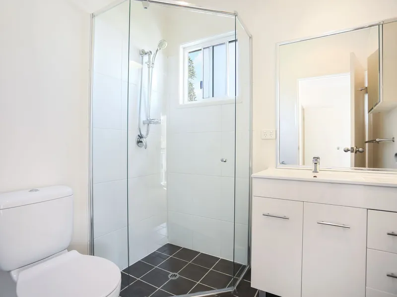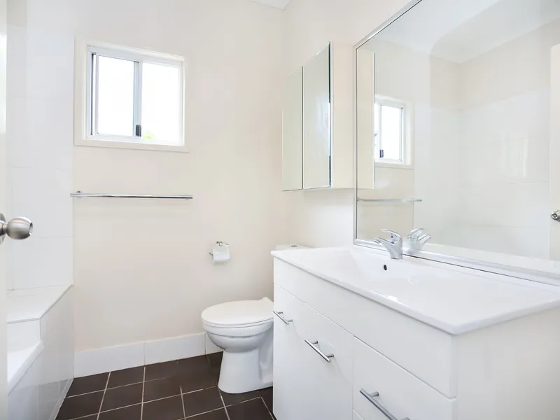 With two generous levels of living, this property is filled with natural light and has high ceilings and a neutral decor. The open plan living, kitchen and dining areas flow out through sliding glass doors to the private entertaining patio. The kitchen has ample bench and storage space, and includes a dishwasher and gas cook-top. This level also has a powder room for your guests.