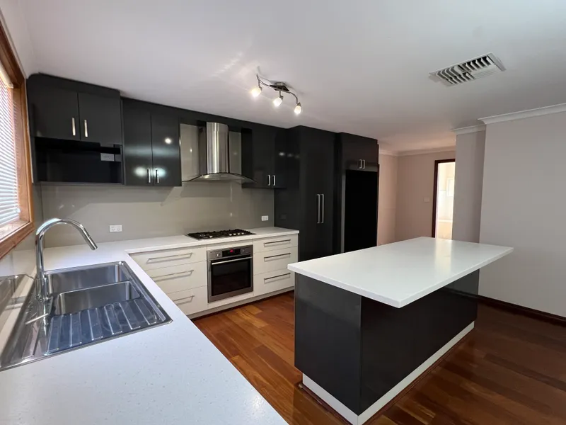 This spacious three-bedroom home, plus a study or optional fourth bedroom, is ideally located on President Street and offers comfortable family living. Featuring a well-appointed kitchen and an open-plan layout, the home provides both space and convenience. All three bedrooms include built-in wardrobes, while the central bathroom is complete with a bathtub and separate shower.