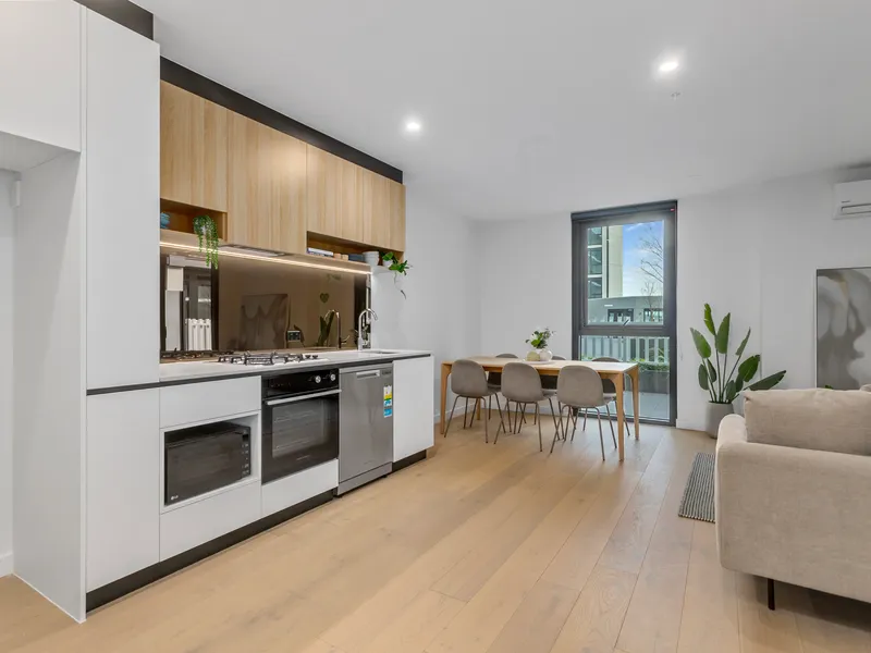 With reverse living the spacious and well-lit living area opens onto the Sunkissed balcony and is perfect for relaxing or entertaining guests. The open-plan layout seamlessly connects the living, meals, and kitchen areas, creating a bright and airy atmosphere that is sure to impress even the most discerning of tenants.