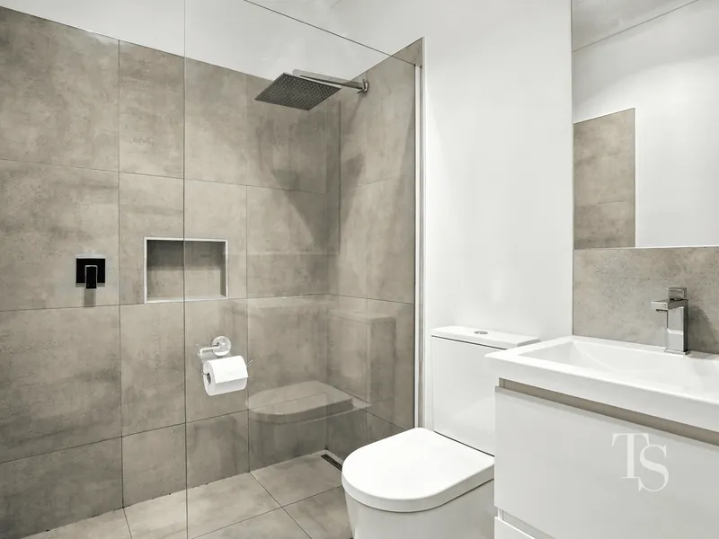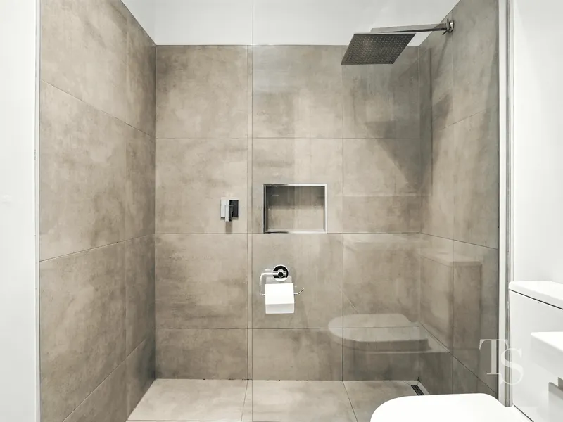 - Modern bathroom with walk-in shower