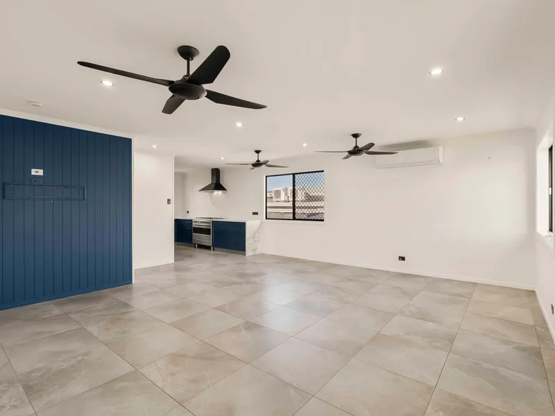 Open Plan Living and Dining: This area features split system air conditioning and multiple ceiling fans for year-round comfort.