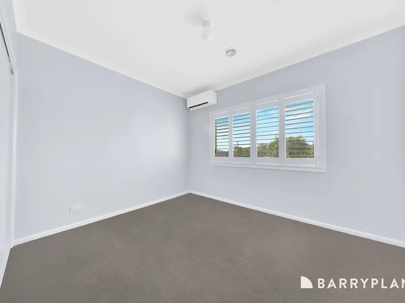 The property features a retreat and three bedrooms upstairs, including a spacious master bedroom complete with its own ensuite and walk-in robe. A separate study or living area downstairs provides the perfect space for working from home, studying, or creating a quiet retreat. The home is designed for year round comfort with ducted heating throughout and a split system for additional heating and cooling.
