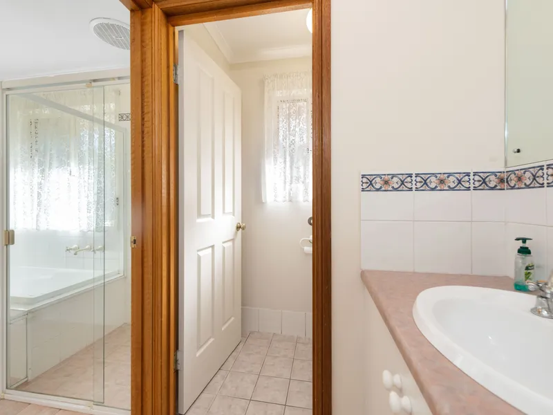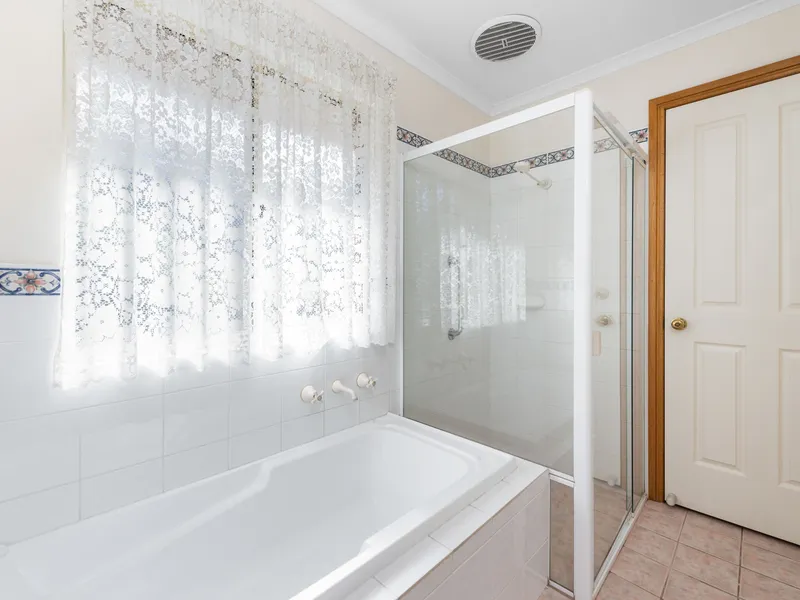 > neat and airy bathroom with separate bath tub, shower and toilet