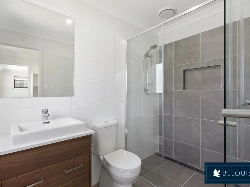 - Carpeted master bedroom with ensuite, ducted air conditioning and walk-in shelved wardrobe