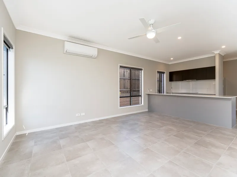 - Open plan kitchen, dining, and family room with ceiling fan and ducted air-conditioning
