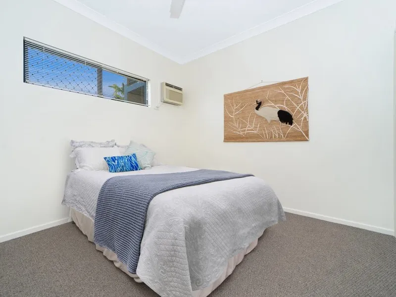 Positioned within a secure complex, residents also enjoy access to a swimming pool and well-maintained common areas. The location provides easy access to The Strand, local cafes, public transport and major amenities. Featuring two generous bedrooms, two bathrooms and a secure car space, the property offers a practical layout with open-plan living and dining flowing through to a private balcony. The kitchen provides ample storage and bench space, ideal for everyday living.
