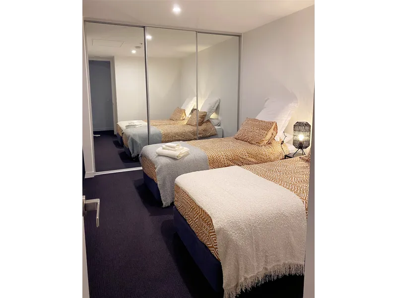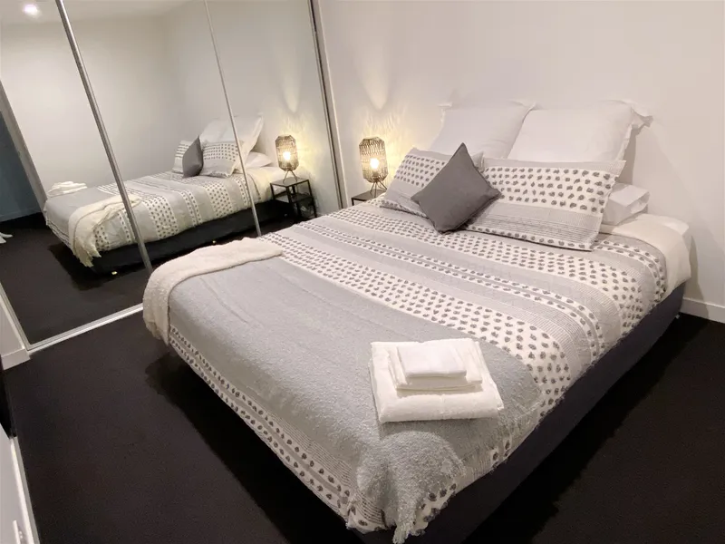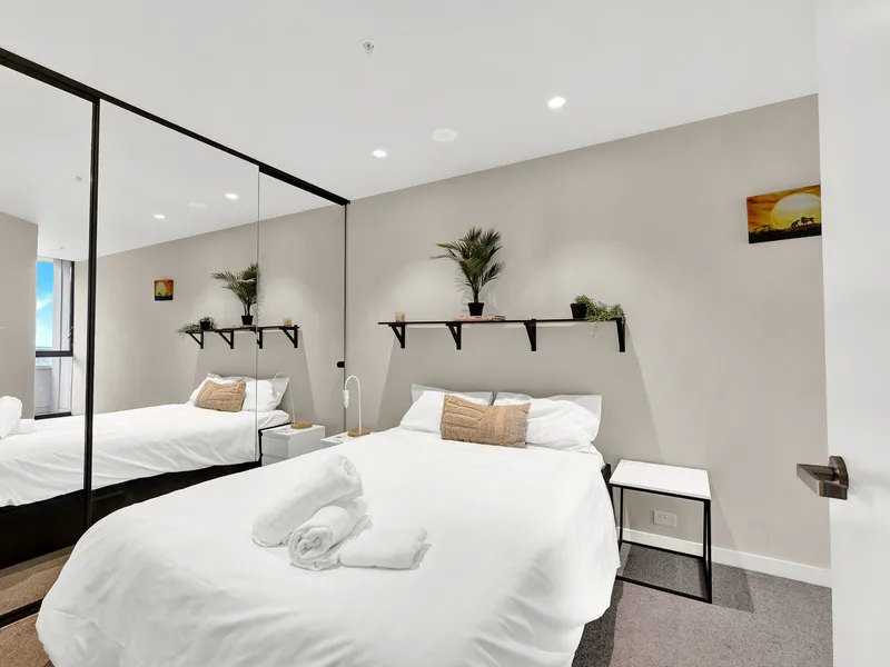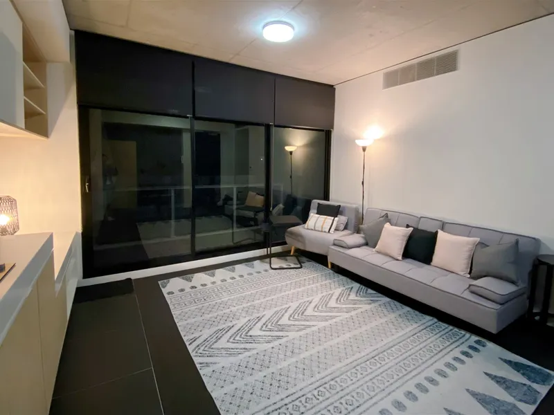 Comprising a large queen-sized bedroom that features mirrored built-in robes and ample storage space. An impeccable and sleek central bathroom with floor-to-ceiling tiles, a convenient European laundry & reverse-cycle heating & cooling unit.