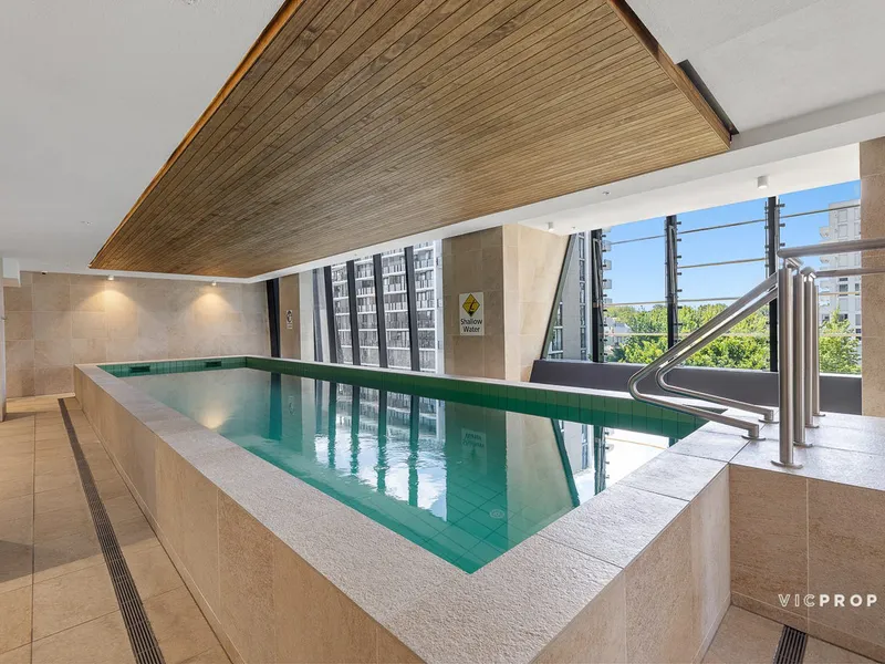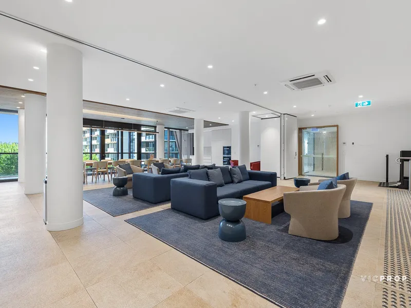 Features include Euro Laundry, reverse cycle heating/cooling, timber flooring, video intercom, and storage cage. Resort-style facilities comprise a resident’s lounge with dining facilities including a kitchen, library room, and a range of well-designed spaces focusing on wellness - indoor pool, gymnasium, and meditation room.