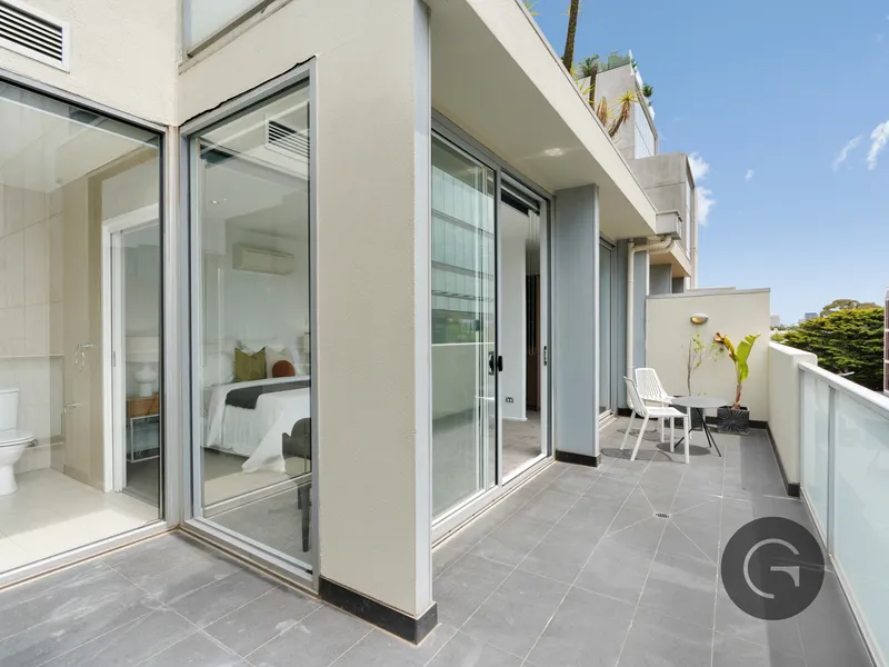 Privately positioned within one of South Yarra’s most desirable residential pockets, this exquisite North facing two bedroom, two bathroom, one car space residence offers an elevated lifestyle defined by space, light and refined contemporary design.