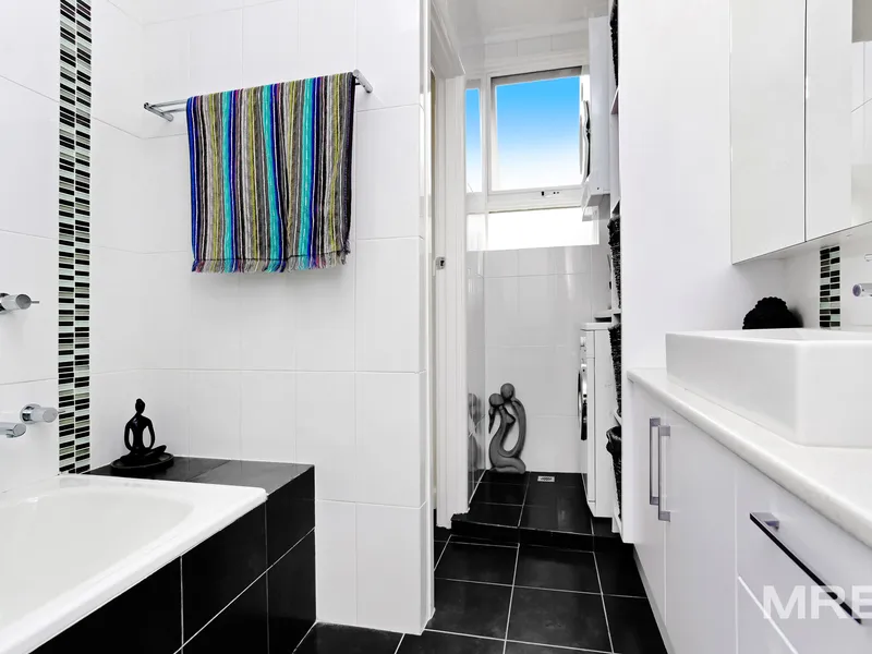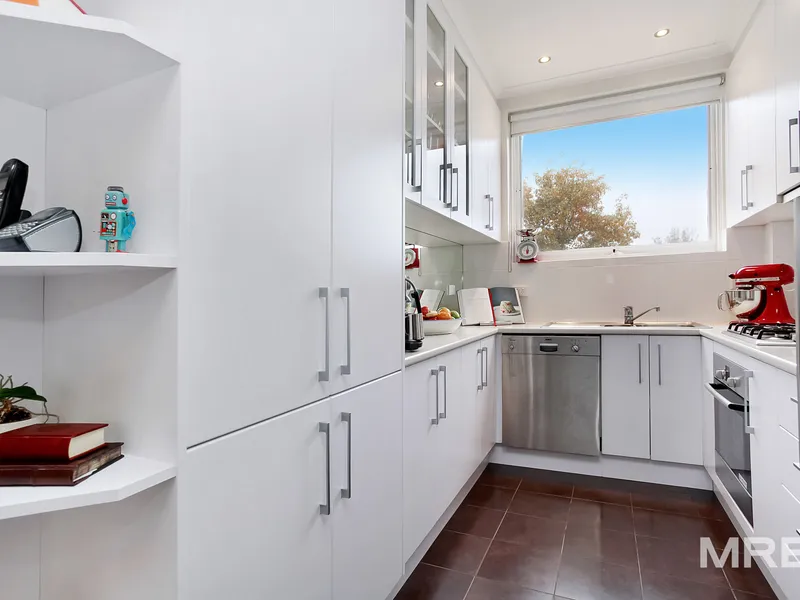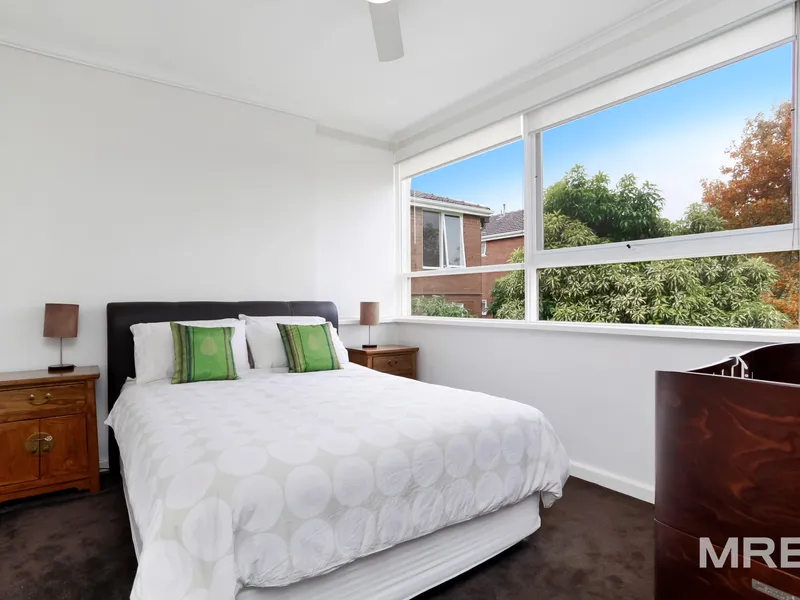 Perched high on the top floor and facing to the northeast so flooded with natural light this oversized, and fully renovated apartment will make a delightful home. Featuring an air-conditioned L-shaped lounge room that opens onto an east facing balcony, a fully fitted kitchen with stainless steel appliances including gas cooktop and dishwasher, two bedrooms with ample robes and a modern central bathroom with laundry facilities.