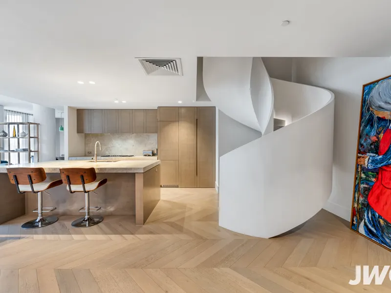 - Herringbone timber flooring to the kitchen, living areas, and downstairs bedroom