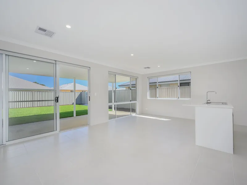 Designed with easy living in mind, the home features a generous open-plan kitchen, living and dining area that flows effortlessly to the outdoor entertaining space — perfect for relaxing or hosting family and friends. The kitchen offers ample bench space, storage and modern appliances to make everyday living a breeze.