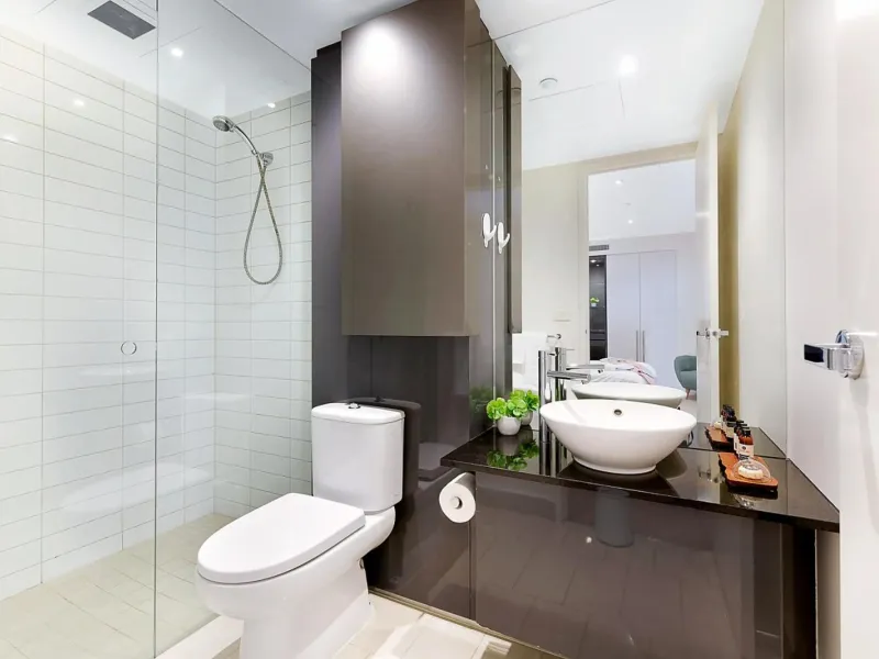 Additional features include a convenient powder room, secure off-street parking, and access to premium resident facilities including a large gym and swimming pool.