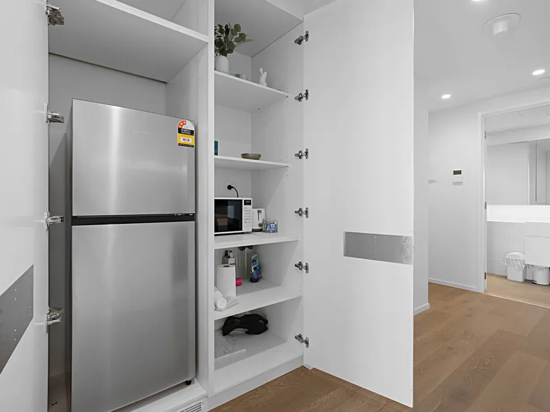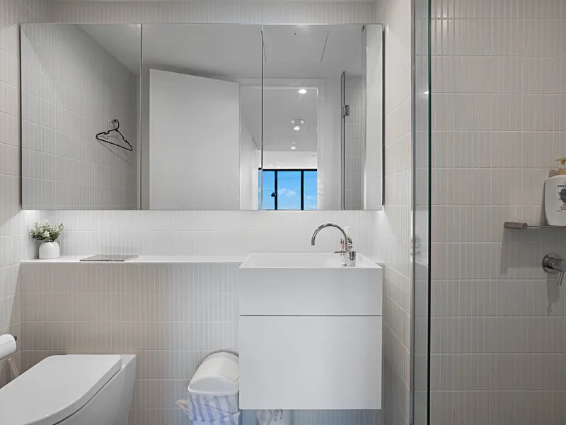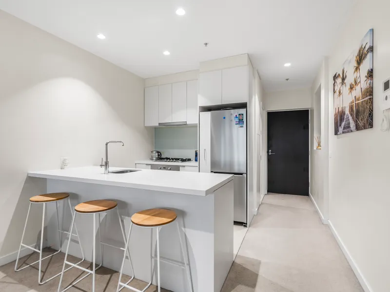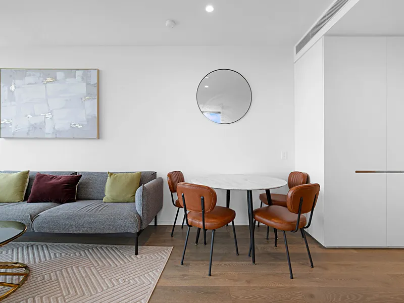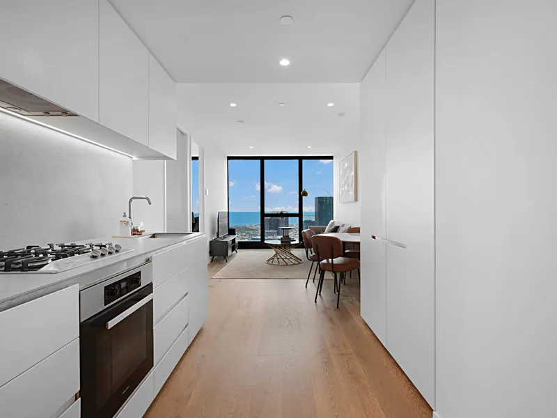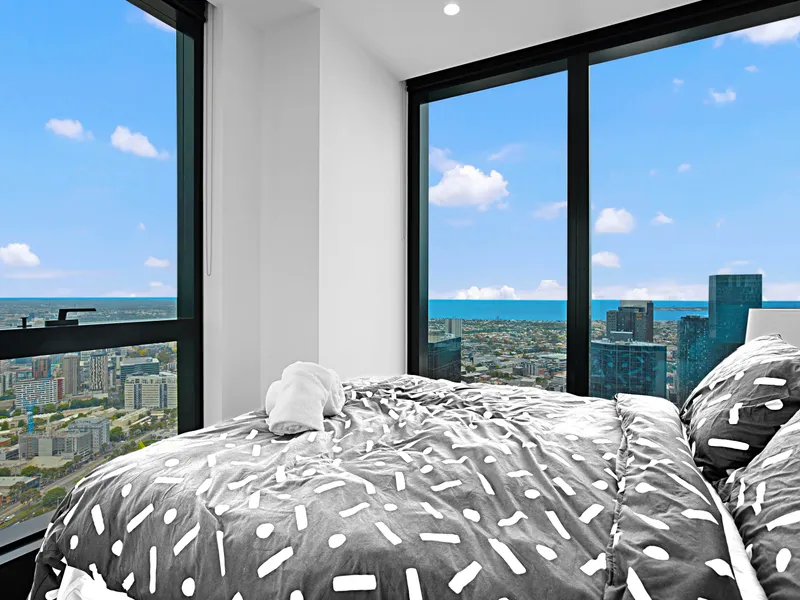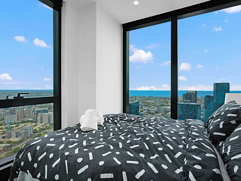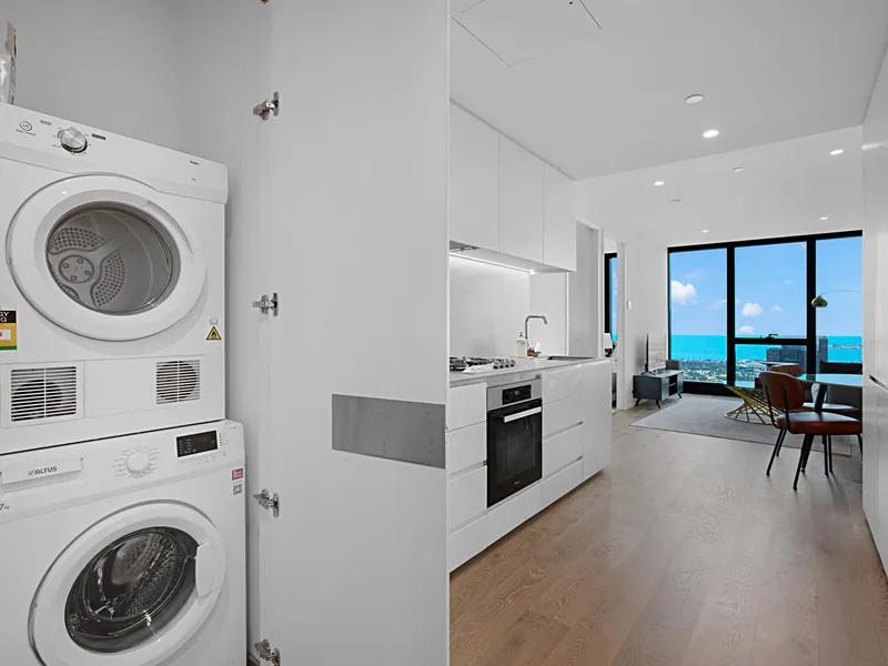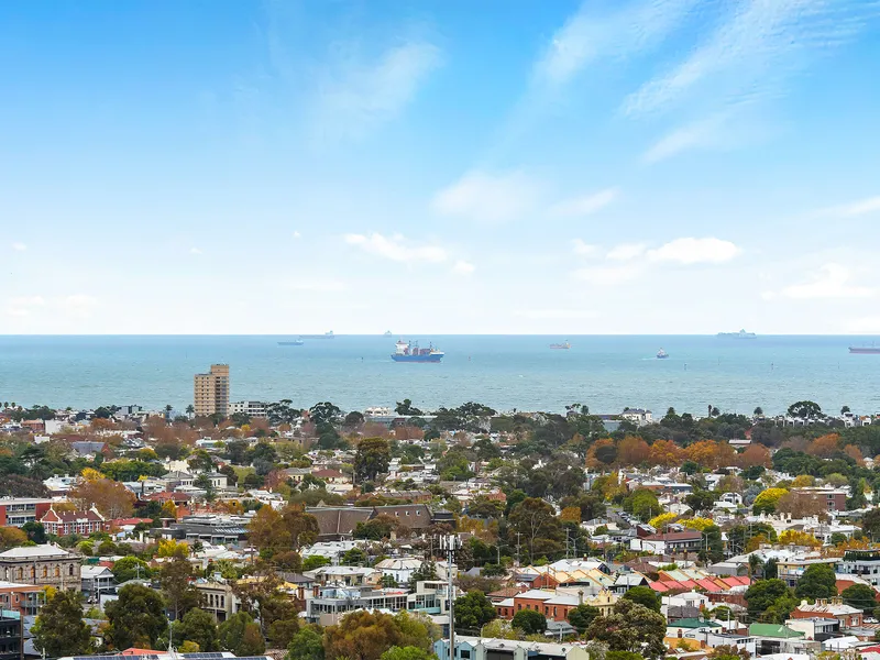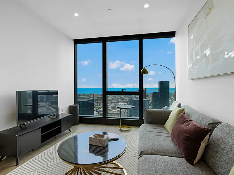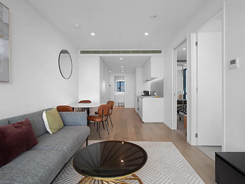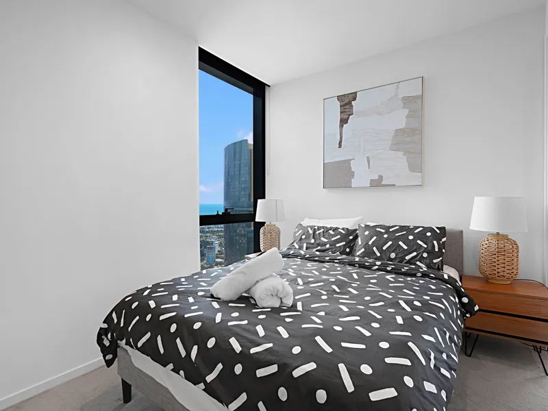 This luxury-led two-bedroom apartment offers an exceptional lifestyle opportunity, showcasing refined modern living with breathtaking high-level views across the Melbourne city skyline.