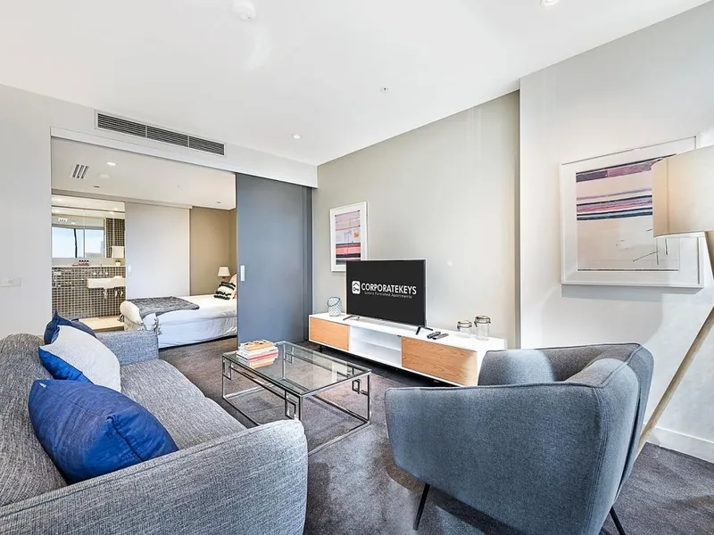 Positioned within the sought-after Wrap Apartments, this impeccably presented, fully furnished two-bedroom plus study residence delivers the perfect balance of comfort, style, and inner-city convenience.