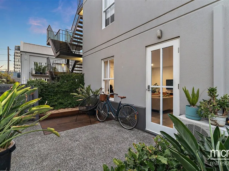 The apartment faces onto an internal landscaped common area, has a pair of generous courtyards, perfect for entertaining outside, and even some space to grow some veggies!